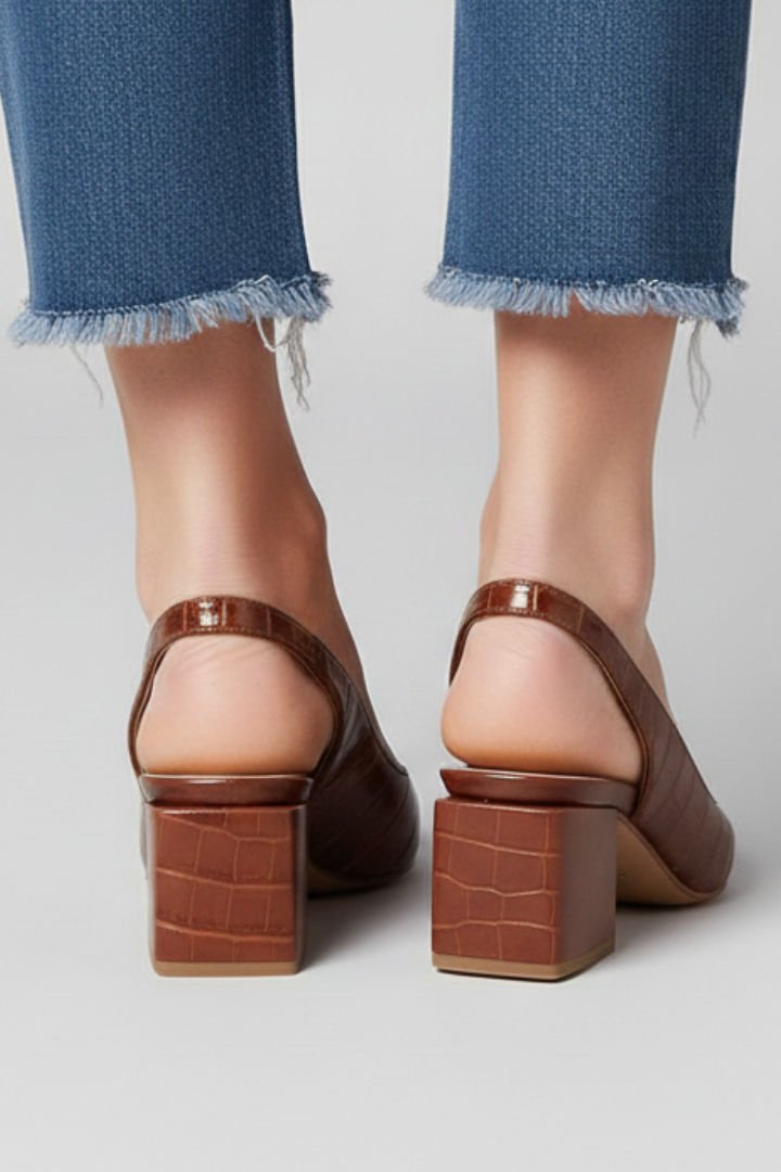 • Mid block heel: The heel height adds lift while maintaining a structured profile.